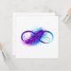 Infinity symbole with a beautiful feather painted in purple and blue bright colors on white background