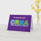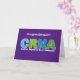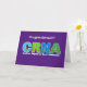 Carte de félicitations pour infirmière anesthésiste "Félicitations". Les couleurs des lettres sont bleues et vertes avec un tracé de rythme cardiaque au milieu des lettres.