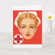 Conception de rouge et de blanc. Illustration vintage d'une infirmière blonde avec le vieux casquette blanc. Arrière - plan rouge et Croix-Rouge au en bas à gauche.