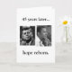 L'AVANT A LES PHOTOS NOIRES ET BLANCHES DE JFK ET D'OBAMA ET LES MOTS 45 ANS APRÈS… ESPOIR RENÉ. LA CARTE INTÉRIEURE EST VIERGE. DE RETOUR DE LA CARTE A LA CITATION DE JFK COMME SUIT : "Laissez le mot aller en avant de ces temps et endroit, à l'ami et à l'ennemi de même, que la torche a été passée à une nouvelle génération des Américains… "Adresse inaugurale de John F. Kennedy le 20 janvier 1961