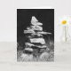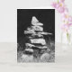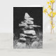 Une photographie noire et blanche saisissante d'un inukshuk de roche, utilisée comme marqueur directionnel en périodes historiques mais maintenant généralement - vu sur des bords de la route et dans les parcs.