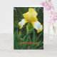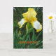 La photographie florale naturelle, d'une jolie fleur d'iris jaune, et un message d'anniversaire composent cette carte.