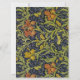 Ce dessin est l'impression d'un dessin de tissu créé par l'artiste britannique William Morris (1834-1896), associé au Mouvement des arts et de l'artisanat. Il représente des fleurs d'iris bleu et orange dans un motif symétrique élégant. La fleur porte le nom d'Iris, déesse grecque de l'arc-en-ciel et messager des dieux Olympiens, transportant des messages vers l'humanité. Les feuilles et les tiges des plantes de l'iris sont représentés en bleu et vert. Il y a quelques oiseaux jaunes perchés sur certains feuillage des plantes. Le motif original a été conçu par William Morris en 1887.