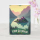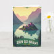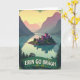This card shows a rose-toned castle with many turrets perched on a lush green island, its towers reflected in a still turquoise lake like a shared secret between close friends 💚. Misty mountains rise on both sides, shifting from deep green nearby to softer purples and pinks in the distance under a sky washed with pale golden light. Tall pine trees sit in the foreground, framing the view the way two companions might lean in to take in the same scene together. The castle’s warm blush color against the cool teal water creates a gentle contrast that feels like quiet romance without a single character in sight ☘️. Along the lower foreground, a deep green banner stretches across the scene with the words “ERIN GO BRAGH” set in white, uppercase letters. A light haze softens the far peaks, and the lake’s surface stays smooth enough to mirror the island’s edge. Near the top border, a thin, spiky green frame traces the upper edge like a leafy crown.