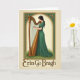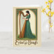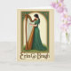 This card features a serene woman in profile, dressed in a flowing emerald gown, leaning toward a golden Irish harp as if sharing a quiet tune with someone just out of view 💚. Her dark hair falls simply over her shoulder, and her lowered eyes and gentle mouth give her the kind of tender focus that feels like friendship in the making. An arched frame surrounds her, trimmed with small green-and-gold flowers and curling Celtic-style details that add a soft, romantic touch ☘️. The harp’s warm honey tones contrast with the deep green of her dress, and a hint of green grass at her feet suggests a calm outdoor setting. Light and shadow skim across the folds of fabric and the harp’s carved edges, giving the scene a subtle sense of depth. Centered beneath the illustration, the words “Erin Go Bragh” appear in bronzed lettering, standing out against the pale background. The text sits low on the front, leaving the arched portrait as the main focus. The border’s gold accents and leafy green motifs repeat around the arch, framing her hands poised over the strings.