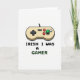 This card features a beige, 16-bit style video game controller floating near the top of a bright white background, outlined in black with a small shadow that makes it feel gently suspended. The D-pad and “START” area are dark, while the action buttons add small hits of red, green, and white that draw your eye like a familiar shared inside joke between friends. Beneath the controller, the phrase “IRISH I WAS A GAMER” sits centered in a pixel-style font that nods to classic games. Most of the lettering is black, but “GAMER” switches to emerald green for a St. Patrick’s Day twist 💚. The wide open space around the design keeps everything focused on the controller and the line of text, like a simple note passed between two people who get each other. The controller’s angled position and tidy shading give it a soft, almost inviting presence, as if it’s waiting for someone else to pick up the second player ☘️. The word “GAMER” appears in green directly below the controller, standing out against the white background.