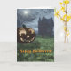 Cette carte de voeux d'Halloween présente une oeuvre originale d'un Jack-O-Lantern grinçant et une maison hantée éffrayante, entourée de chauves-souris au clair de lune, créée par l'artiste Jayne Wilson dans Vue d'Esprit. Le verset à l'intérieur dit : En cette période spéciale de l'année, quand jaillissent les lanternes jack-o, il donne une chance bienvenue d'envoyer un "Bonjour !" chaleureux. Joyeux Halloween.