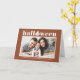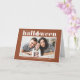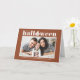 Joyeux Halloween ! Envoyez des salutations Halloween à votre famille et à vos amis avec cette carte Halloween personnalisable. Il présente une typographie rétro et audacieuse et un accent citrouille sur un arrière - plan en terre cuite. Personnalisez en ajoutant vos détails. Cette carte Halloween photo personnalisée est disponible en d'autres couleurs. Des éléments correspondants sont disponibles.
