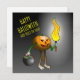 Jack O'lantern sort un tour ou traite la nuit d'Halloween avec son seau pour tous les bonbons qu'il collecte.