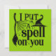 Ce design classique d'Halloween présente la phrase effrayante "Je t'ai jeté un sort" dans une police audacieuse inspirée du gothique. La palette de couleurs noir et blanc renforce l'atmosphère sinistre, ce qui rend le design parfait pour la saison d'Halloween. Le texte est accompagné d'éléments emblématiques de sorcière, notamment un chapeau pointu de sorcière, un balai, une toile d'araignée et une petite araignée, le tout agencé pour créer une composition ensorcelante. Les détails subtils de points autour du texte ajoutent une touche de charme magique.