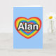Carte J'aime Alan. Je t'aime Alan. Cœur