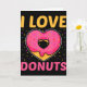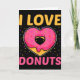 Carte J'aime les Donuts en forme de cœur Drôle d'amateur