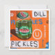 Impression d'un pot de cornichons avec arrière - plan orange et texte.