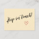 Gardez vos amis et votre famille à jour avec votre nouvelle adresse à l'aide de ces cartes de boîtier simples et élégantes. Vous pouvez les insérer dans vos envois ou les partager en personne, car vous rencontrez des personnes que vous devez avertir. Lorsque vous voulez une méthode distinctive pour faire savoir à votre tribu comment vous trouver, cette carte est suffisamment versatile pour n'importe qui. Il présente de jolis graphiques typographiques qui lisent "We've Moved" sur le devant et "Keep in touch!" sur le dos, en utilisant une police de script moderne, décontractée, manuscrite. J'ai placé une petite illustration de maison sur le contour avant et rouge du coeur aquarelle sur le dos, en ajoutant une touche distinctive. Utilisez les champs modèle pour ajouter tous vos propres détails afin de personnaliser ce design pour votre propre usage. Si vous souhaitez modifier la jolie police sans-serif simple que j'ai utilisée pour le texte modifiable, ou si vous souhaitez déplacer des lignes ailleurs, cliquez sur le lien pour customiser la carte plus loin. Le type noir a été placé sur un arrière - plan crémeux et jaune pâle modifiable ; vous pouvez le changer en n'importe quelle couleur que vous souhaitez. // 90 //