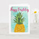 Une carte d'anniversaire tropicale avec un ananas peint à la main.