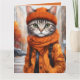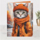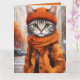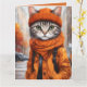 Carte de voeux pliée avec des illustrations d'imaginaire vives d'un chat tabby jazzy habillé en tenue d'automne chaleureuse. Créé par la créatrice humaine Alma Wad à l'aide de Canva AI, ce design fantaisiste capture le charme cosy de la chute. Parfait pour les amoureux de les chats, surtout ceux qui aiment les chats ludiques et amusants et les teintes vibrantes de l'automne. Une carte unique et chaleureuse pour la saison! Citations amusantes incluses à l'intérieur.