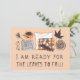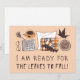 Ce design cosy d'automne encapsule parfaitement l'anticipation et la chaleur de la saison automnale avec la phrase "Je suis prêt pour que les feuilles tombent !". Le texte est écrit dans une police ludique et dessinée à la main qui complète les illustrations accueillantes et confortables qui le surmontent. Le design présente une collection d'éléments essentiels réconfortants de l'automne : une tasse de café fumante, un livre ouvert, une paire de lunettes, un oreiller moelleux, une couverture à carreaux et une feuille tombée, le tout disposé dans une composition charmante et décontractée. La palette de couleurs douces et chaudes, dominée par des nuances de beige, de brun et d'orange, évoque les sentiments paisibles et nostalgiques de l'automne.