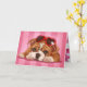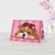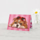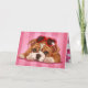 Chiot bouledogue anglais adorable avec des lunettes de soleil, sur fond rayé rose, peint par l'artiste Maryline Cazenave.