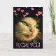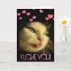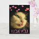 Portrait en gros plan d'un chat avec sa langue rose qui dépasse, petits cœurs, texte "JE T'AIME !"