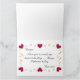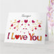 Une typographie frappante « Je t'aime » conçue pour vous en ombre dorée, rouge et violette. Au-dessus, une explosion de cœurs rouges et violets, de ruban doré et d'étoiles, ainsi que d'autres éléments à l'intérieur de la carte pour former un cadre pour votre message.