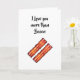 Cette carte simple est décorée de bacon sur le devant et du mignon message, Je t'aime plus que le bacon. Elle serait parfaite pour un anniversaire, la fête des pères, la fête des mères, la Saint-Valentin ou toute autre occasion spéciale.
