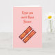 Cette carte simple est décorée avec du bacon sur le devant, et le message mignon, Je t'aime plus que le bacon. Ce serait parfait pour un anniversaire, la fête des Pères, la fête des Mères, la Saint-Valentin ou toute occasion spéciale.