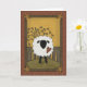 JE T'AIME. Carte de voeux de fête de pays avec les moutons wooly du Suffolk. Moutons noirs et blancs avec le coeur poli d'or. Étoiles d'or. Frontière décorative. Avec une peu d'aide de mes amis chez www.scrappindoodles.com. De elle médecine de loup.