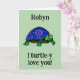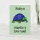Dites-leur ce que vous ressentez avec cette carte humoristique. Elle comporte un dessin d'une tortue mignonne et lit : Je t'aime tortue-ment ! Vous pouvez la personnaliser avec votre choix de nom sur le devant et les mots à l'intérieur.