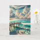 Carte anniversaire. Je vous aime tous. Joli océan, pélicans et ciel nuageux.