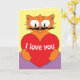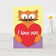 Chat à Moustache Dessin Animé Señor Gato - "Je t'aime" Carte de Vœux. À l'intérieur est écrit - Hier... Aujourd'hui... et Toujours !