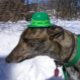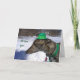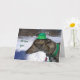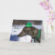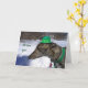 Tami, un magnifique lévrier gris tout prêt à aller chercher ce pot d'or ! Carte parfaite pour l'amateur de lévriers gris ou de chiens. Célébrez le port du vert en envoyant cette carte amusante ! "Je te défie à la course !" est issu de ma photographie originale et est sous mon droit d'auteur.