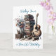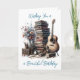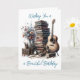 Carte d'anniversaire personnalisée pour lui ou elle. Une pile de livres vintages, de fleurs et une illustration acoustique d'aquarelle de guitare.