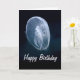 Une carte d'anniversaire qui présente une méduse flottant sous la structure en parapluie, exposant ses organes translucides brillamment éclairés par une teinte bleue du dessus, près de la surface de la mer. L'image peut être transférée à tout autre produit de la gamme Zazzle.