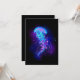 Grande méduse bleue, artistiquement dessinée, brillante, brillante, avec de longues tentacules sur arrière - plan noir avec bioluminescence violette. Méduse brillante.