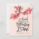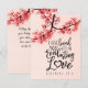 Citation inspirant écriture sainte carte plate représente une photographie de la nature d'une branche de fleurs roses sur fond rose. Il comporte une partie d'un verset biblique encourageant Jérémie 31:3, "Je vous ai aimés d'un amour éternel". Le message peut être personnalisé ou supprimé pour une note manuscrite et la carte utilisée pour de nombreuses occasions. Photo de Patrick Shaun.