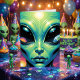 Une autre carte d'anniversaire. Un design d'un autre monde captivant, avec un alien extraterrestre qui est avec de gros yeux bombants tenant les reflets d'autres planètes, y compris la terre en eux.