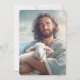 Cette carte à plat est illustrée d'une photo de Jésus tenant un agneau.