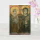 Icône byzantine (6ème-7ème siècle). Une magnifique image représente le Christ avec de grands yeux bruns. Il est debout avec sa bible à côté d'un disciple. "L'Abbe Mena et el Christ"