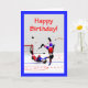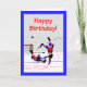 Une carte d'anniversaire avec mon oeuvre numérique originale de deux joueurs de hockey dans différentes étapes de tripping et de chute, pour les fans et les joueurs de hockey. Le texte dit "Joyeux anniversaire !"