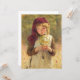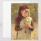 Carte Jeune fille mignonne tenant des fleurs de tasse à