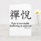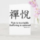 Le kanji pour la joie de zen avec le proverbe de bouddhiste zen, "douleur est inévitable, souffrant est facultatif".