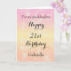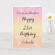 Une jolie carte de 21e anniversaire de bokeh rose, jaune et orange pour petite-fille, fille, fillette, etc. Le devant de ce joli 21ème anniversaire peut être facilement personnalisé avec le nom du récipiendaire de l'anniversaire. Le message de la carte intérieure peut également être personnalisé. Cela ferait un grand gardien d'anniversaire pour son vingt et unième anniversaire.