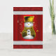 Carte Joli bonhomme de neige doré sur Noël rouge