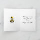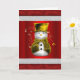 Un bonhomme de neige doré mignon, vêtu d'un gilet en velours doré et d'un haut-de-forme, avec des étoiles et des rubans autour de lui, sur un fond rouge métallisé. Il est encadré de velours rouge (imprimé uniquement) et de fourrure de costume de Noël blanc de Père Noël. Le message à l'intérieur dit "Je vous souhaite un très joyeux Noël et une bonne année" peut être personnalisé.