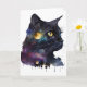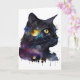 Carte Joli Chat Cosmique À L'aquarelle Noir Espace