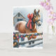 Carte Joli Cheval Brown avec Bow et Grange Noël