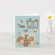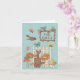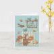 Cette carte est prête à être customisée avec votre propre message à l'avant et à l'intérieur ou à laisser le texte modèle tel quel. Il est décoré dans un joli style cottage avec des illustrations d'oiseaux, de papillons, d'une grenouille, d'un lapin, d'une souris, de champignons et de fleurs contre un arrière - plan bleu clair.