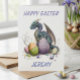 Carte Joli dragon à l'aquarelle de Pâques avec des œufs