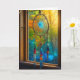 Joli attrapeur de rêves bleu et rouge suspendu dans une fenêtre. Carte blanche Serene art.