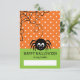 Une araignée verte et orange Bonne carte d'enseignant Halloween de votre enfant pour écrire le nom de leur professeur et leur propre nom à la main dans la boîte blanche. Le dos a un message spooktaculaire qui peut être personnalisé si désiré.